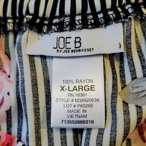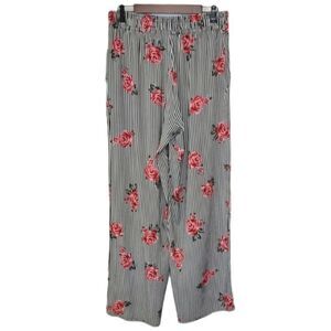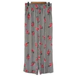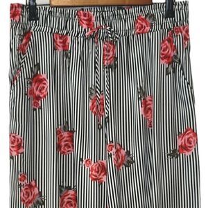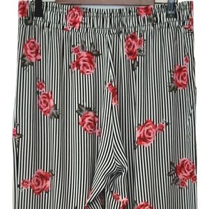 Joe B By Joe Benbasset Black Striped Floral Elastic Waist Wide Leg Pants