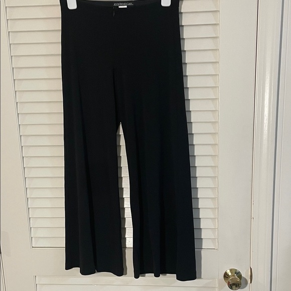 The pants in the image are identified as Joe Benbasset black stretch wide leg pants. Joe Benbasset is a clothing brand, but it is not specifically an equestrian brand.