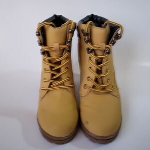 Joe Boxer Allyn Chunky Ankle Booties Women 8 Beige Tan Faux Leather Block Heel