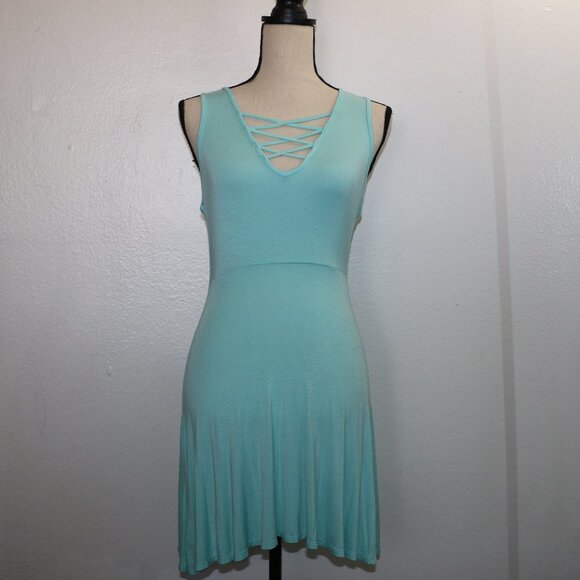 Stay cool and stylish with this Joe Boxer aqua dress! This tank-style mini dress features a trendy lace-up neckline, a flattering fit and flare silhouette, and a comfy casual vibe that's perfect for everyday wear.