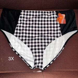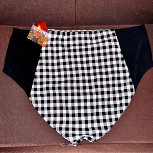 Stylish checkered bikini bottom. Features black and white design. Comfortable fit.