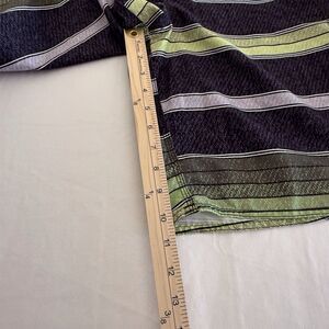 Color: Multi-stripe pattern in navy, teal, aqua, lime green, and gray tones