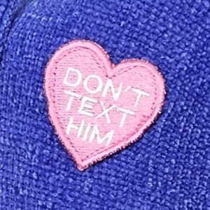 Joe Boxer "Don't Text Him" Juniors Patch Chenille Sweater Hoodie BLUE MEDIUM