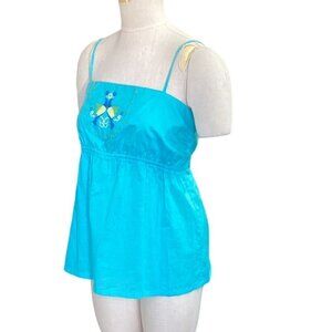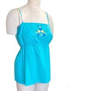 Joe Boxer Embroidered Birds Spaghetti Strap Tank Top L Turquoise 75J