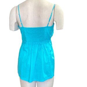 The Joe Boxer Embroidered Birds Spaghetti Strap Tank Top in turquoise is a stylish and cute blouse perfect for casual occasions. Made of 100% cotton, this sleeveless top features a square neckline and pullover closure. The tank top is adorned with needlepoint embroidered birds, adding a unique touch to the coastal grandma, festival, and beach themes. With a regular fit and adjustable straps, this lightweight and breathable top is easy to care for and suitable for the summer and spring seasons.