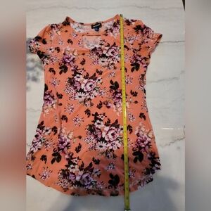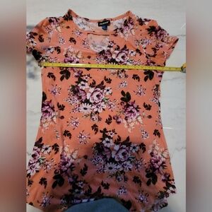 Joe Boxer Floral Orange Cap Sleeve Cut Out Blouse Size Large