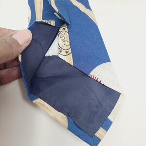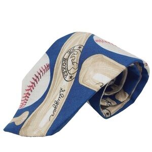 Men's navy blue novelty baseball tie by Joe Boxer. One size. 100% cotton. Baseballs and slugger bat printed all over tie. Excellent pre-owned condition; no flaws.
