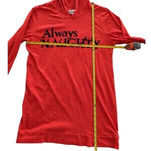 Women's, Joe Boxer, Red, Nightgown, Reads, "Always Naughty" on the front. It's a size XL But measures at a size Medium so I'm listing it as a Medium. See photos for measurements. The hood has little devil Horns. No stains or rips. Washed and ready to wear. Sleeves are long at 22 inches. Great for Halloween, Spooky season.