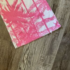 Cute pink & white tropical print terrycloth lounge/beach pants. Cropped raw hem. Wide leg. Cotton/polyester fabric. In great preowned condition. Joe Boxer Size small