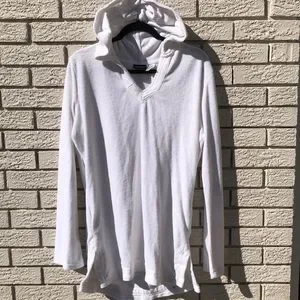 Perfect to wear out of the shower or as a beach coverup, size large but I wear it as a size XS so it’s oversized