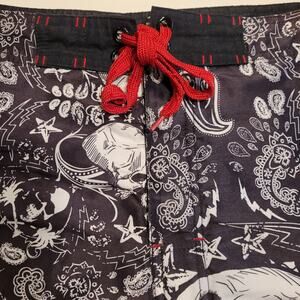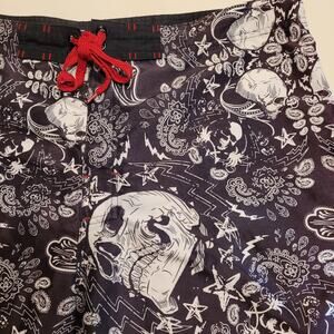 Joe Boxer Skull Board Shorts Brown Graffiti Paisley Lightning Stars Grunge sz 38