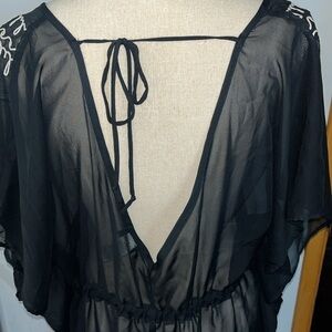 Joe Boxer Sz XL swimsuit Cover Up Sheer Black/ White Embroidered trim. NWOT