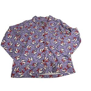 Joe Boxer Women’s M Flannel Pajama Set Purple White Ice Skates Winter Holiday