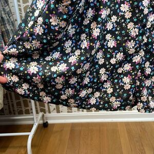 Joe Boxer boho black floral print romper with pockets. Features adjustable straps, V-Neck, pretty allover dark floral print, lightweight 100% rayon fabric and our favorite feature - pockets! New with tags but it does have a manufacturing flaw - a crooked seam and the neckline (see last pic). Size Juniors 3X - see pics for measurements.