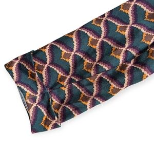 🎨 Pattern: Vintage geometric in deep teal, plum, gold, and tan tones (resembles peacock 🦚 feathers)