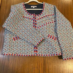 Joe Browns HX582 Quilted Floral Embroidered Jacket Navy Red Boho Cottagecore