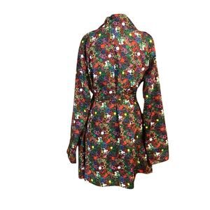 Step out in style with this Joe Browns trench coat, designed with a chic notched collar and graceful bishop sleeves. Ideal for cocktail events, its sleek black hue adds a touch of sophistication to any night out ensemble. Definitely a unique and standout piece. Artist art to wear. Model image is AI generated for styling purposes and may vary from actual jacket list listed. Please see other photos.