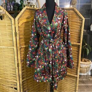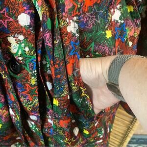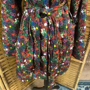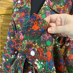 Joe Browns colorful graffiti stars Notched Collar Cocktail Trench Coat size 10
