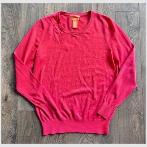 Joe Fresh 100% Merino Wool Crewneck Sweater Size S Coral Red Lightweight Knit