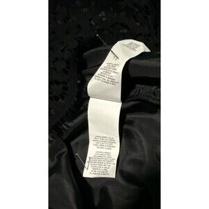Joe Fresh womens black lace mini skirt, size 8. Features a scalloped hem and delicate lace overlay that adds both charm and versatility. Perfect for a chic, whimsical look or styled with darker pieces for a subtle gothic vibe.