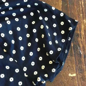 Joe Fresh | Black Shirt Sleeve Blouse with White Daisies, Tie at Neck