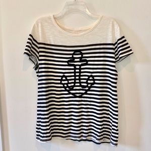 Joe Fresh Black & White Striped Anchor T-Shirt Sz L