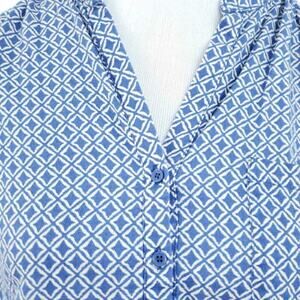 Joe Fresh Blouse Lightweight Summer Blue White SMALL. Cute lightweight shirt for spring and summer with blue and white geometric design. Perfect for the beach.