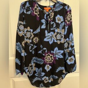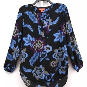 Joe Fresh Blouse Womens Medium Blue Floral Long Sleeve Sheer Pullover Top.