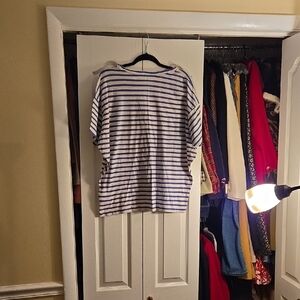 Joe Fresh Blue and White Boxy 3/4 Sleeve T-Shirt