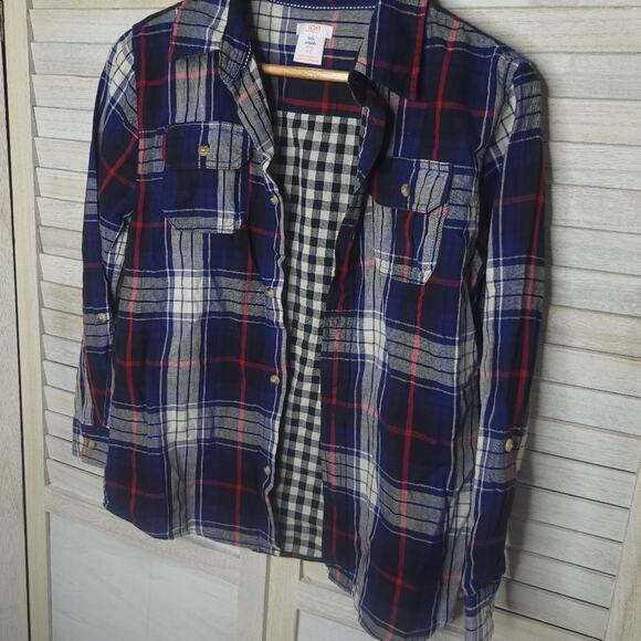 Joe Fresh Boys Size XL 14 Regular Button Down Plaid Shirt Red Gray Blue White