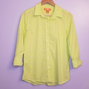 Joe Fresh button down shirt. Lime green and white checkered print.