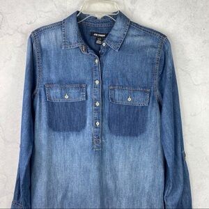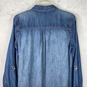 Joe Fresh Women's Classic Denim Jean Popover Shirt Dress. Long Sleeves. Folded Collar. Buttons Down / Button Up style. Faux Front Pocket Details. Super Cute & Comfy. Loose & Lightweight. Great Condition. No Stains or Rips.