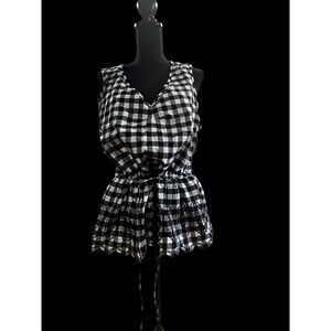 Joe Fresh Embroidered Black & White Checkered V Neck Top, Size L/G