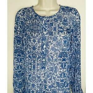 Joe Fresh Floral Sheer Top Blouse 1/2 Button Closure Size XS Tropical Preppy. Beautiful blouse Very lightweight fabric, long sleeve button cuffs, in excellent condition. Floral allover printed. Measurements are approximately and taken on flat surface Pit to pit 19 Length shoulder to hem 24 Length shoulder to cuff 24.5 Ítem weight 3.3oz( shipping bah excluded)
