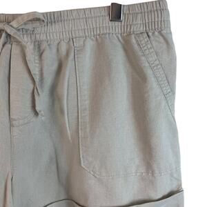 Joe Fresh Linen Blend Pull-On Shorts. Size Large. Beige linen blend in 52% linen & 48% cotton. Elastic waist and front/back pockets. Cuffed legs. Great preowned condition.