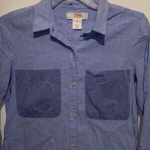 Joe Fresh Men's Long-Sleeve Button-Down Pointed Collar Blue Shirt Small