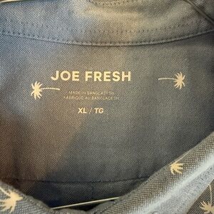 Joe Fresh Palm Tree Shirt XL – Blue Short Sleeve Button Down Summer Casual
