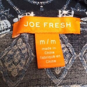 Joe Fresh white and dark navy peplum top Sz M, sleeveless, split neck.