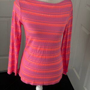 Joe Fresh Pink Knit Top w/ Orange Sequin Stripes Sz S/P – Long Sleeve Tunic