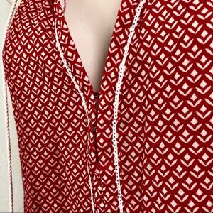 Joe Fresh Red White Tribal Print Boho Style Racerback Top Tassel Front TIe
