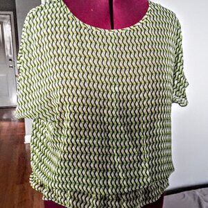 Joe Fresh Sheer Chevron Green Print Top