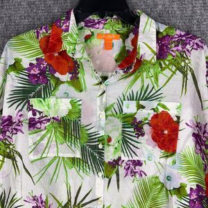 Joe Fresh Shirt M Women Hawaiian Button Down Cover-Up Oversized Basic Casual Top