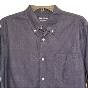 Joe Fresh Shirt Mens Medium Blue White Polka dot Button Down Long Sleeve Career