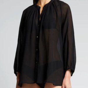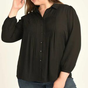 Joe Fresh Silk Button Up Blouse Ribbed Detail Long Sleeve BLACK SZ LRG NEW!