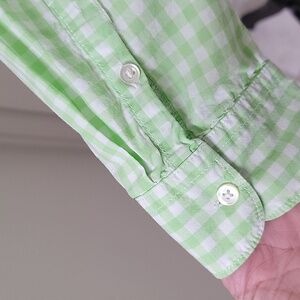 Joe Fresh Size L Lime Green & White Gingham Check Button Down Shirt Long Sleeve
