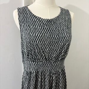 Joe Fresh Sleeveless Fit Flare Dress Black White Geometric Print Sz M Classic