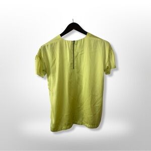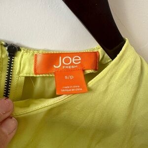 Joe Fresh Small Petite Womens Neon Green Satin Short Sleeved Blouse