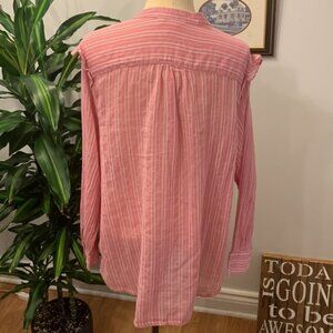 Pretty button front shirt from Joe Fresh woth white stripes and ruffles at the shoulders
