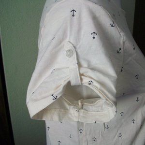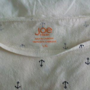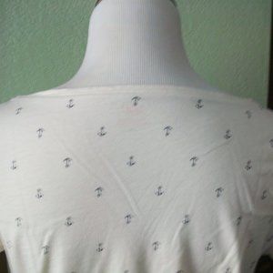 Joe Fresh White Nautical Black Anchor Boat Neck Short Sleeve Knit Tee Shirt Sz L