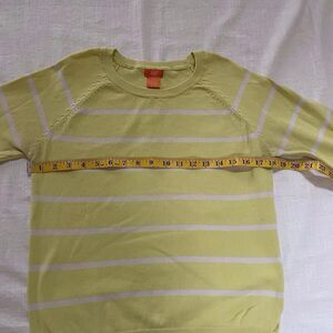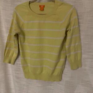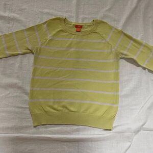 Joe Fresh Women S/P Pullover Sweater Yellow & White Stripe Round Neck 3/4 Sleeve